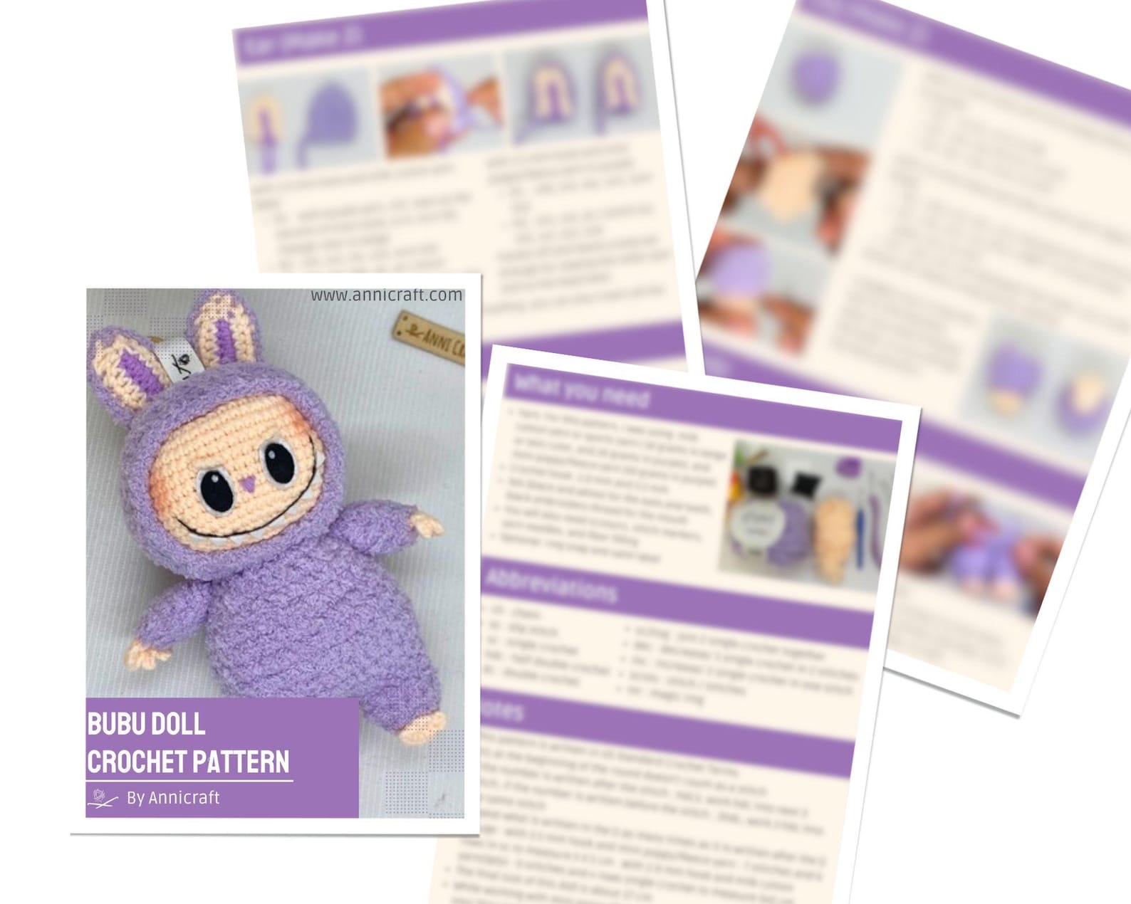 Create your own adorable Bubu Doll—a cozy, huggable little monster in a bunny suit. This listing is for a digital crochet pattern with a step-by-step video tutorial, perfect for gifts, collections, and handmade lovers.